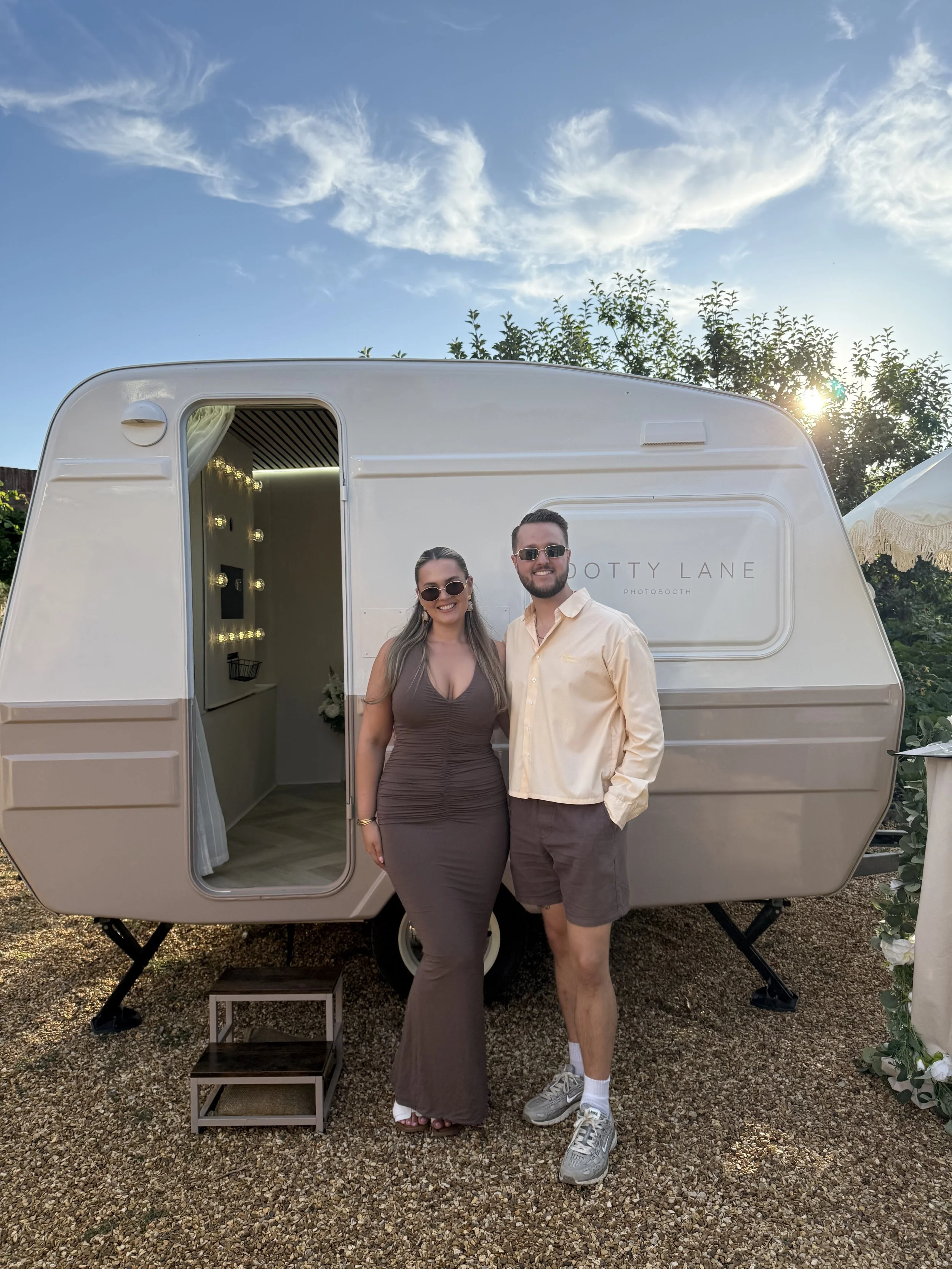 At Dotty Lane, we believe every special moment deserves to be captured. Our unique photobooth is set inside a beautifully transformed vintage caravan — a labor of love created by husband-and-wife duo, Charlotte and Kristian. What began as a run-down old caravan has been lovingly restored into a modern, eye-catching space where memories are made.